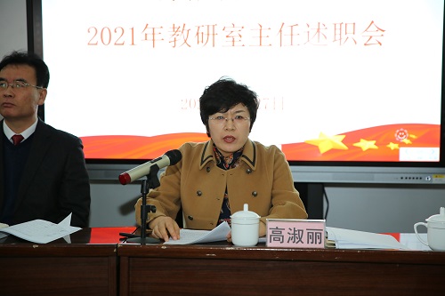 随后,校长高淑丽对教研室主任述职进行点评。她指出,述职只是形式,目的在于促进各学科对以往工作的深入总结,对新学期工作进行科学的谋划安排,加强各教研室的沟通交流,比学赶超,推进学校教学教研工作整体发展。她强调,新学期要铆足劲,加油干,一是发扬优势,建设高水平专业群,争取进入省级高水平专业群,尤其在各类竞赛中要把艺术优势扬足,冲刺最高奖项;二是改革创新,建设特色文化课教学模式,打造具有特色的艺术高考文化课教学模式,不断提高学生文化成绩;三是立德树人,加强教学管理,提升教师专业水平;四是培养人才,以老带新,以新促老,加强团队建设,用众力,无敌天下,用众智,无畏圣人。
